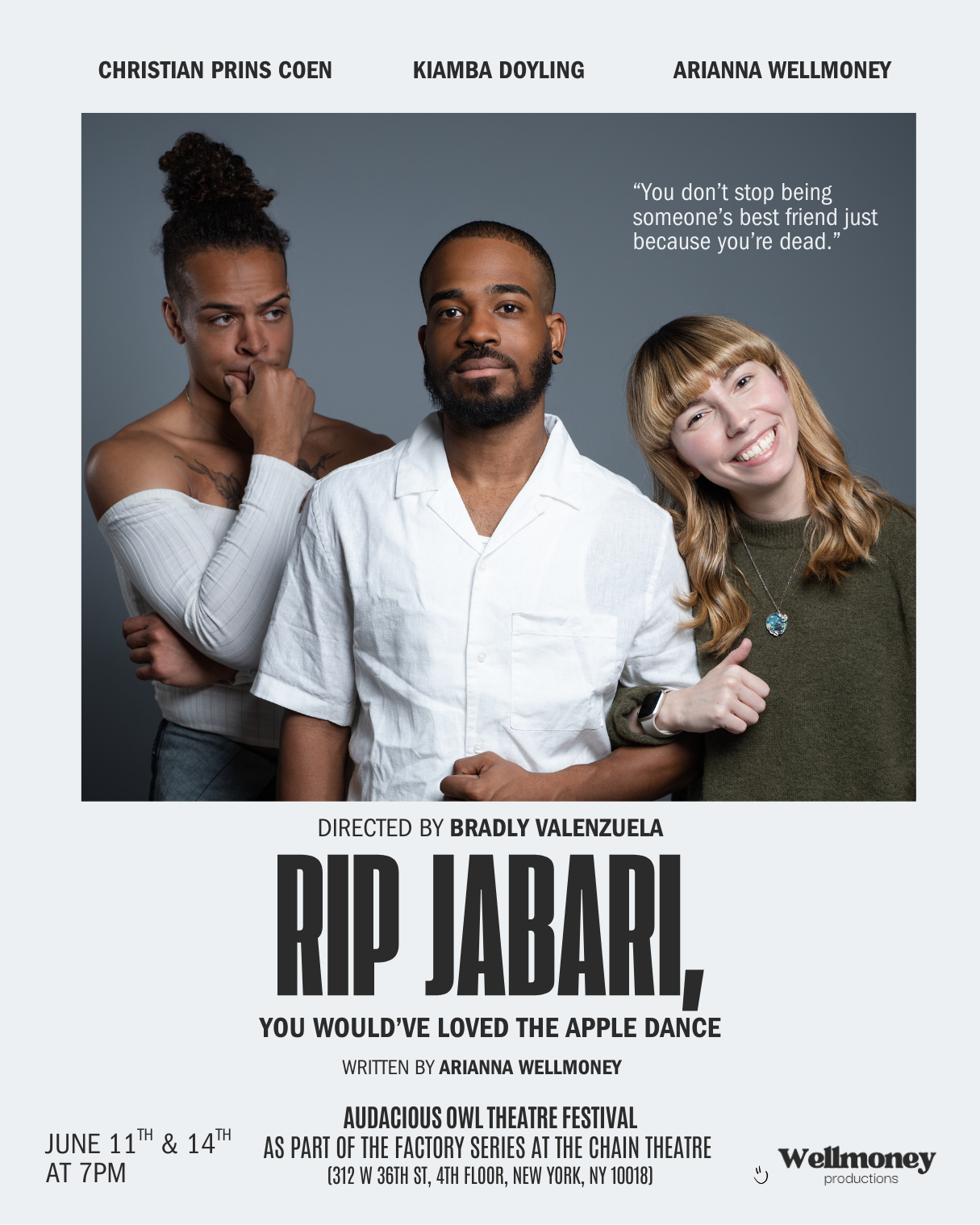 Wellmoney Productions is a theatre and film company founded by Italian–born, New York–based actor, playwright, and producer Arianna Wellmoney.
